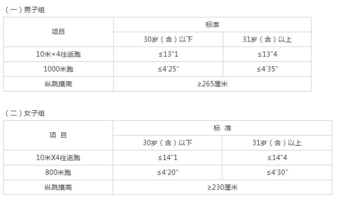 體能測評:不同省市有所區(qū)別,有的先體能再面試(如浙江、山東、北京等);有的先面試后體能(如上海、云南等地,根據(jù)崗位人數(shù)按照1:2的比例,按照綜合成績高低,進(jìn)行體能測評)。