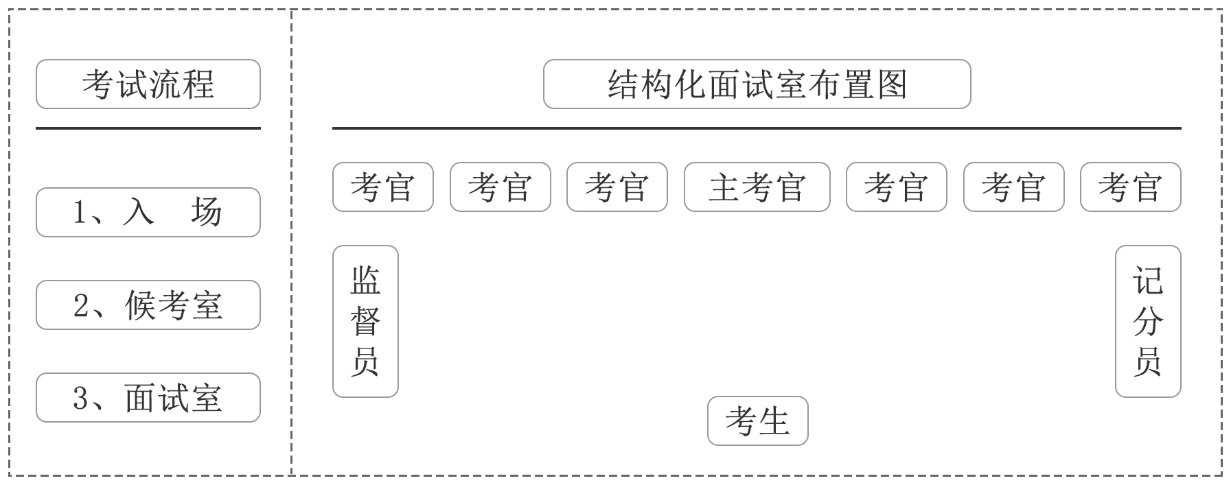 (1)全市各面試考場根據(jù)考生人數(shù)分別設(shè)置若干個(gè)面試組,每個(gè)面試組統(tǒng)一由7名考官組成。其中,主考1人,考官6人。主考和考官均于面試前通過分類抽簽確定分組。面試組不設(shè)用人單位考官。