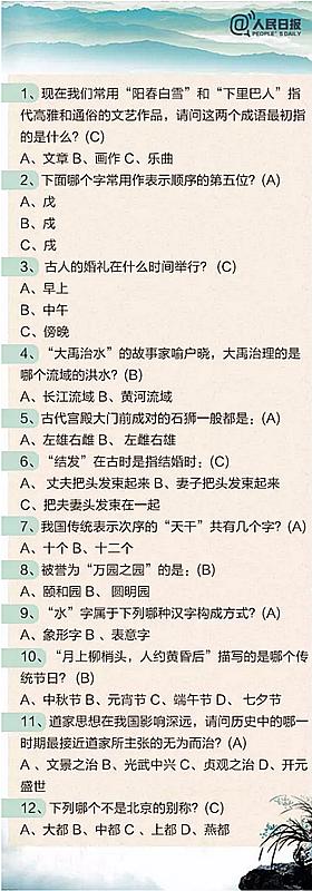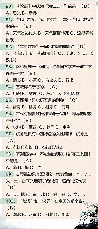 2018年公務(wù)員考試必看:100道中國文化知識題
