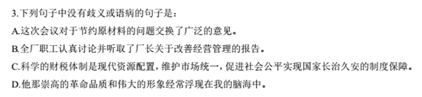 答案:C。解析:A項,狀語和定語次序錯位,應改為廣泛地交換了意見。B項,語序不當,應改為全廠職工認真聽取并討論了廠長的報告。D項,品質(zhì)是抽象概念,是不能浮現(xiàn)在腦海中的,不合邏輯。故這道題選C。